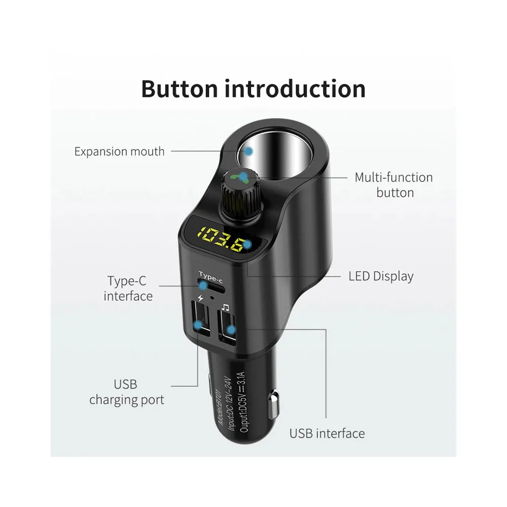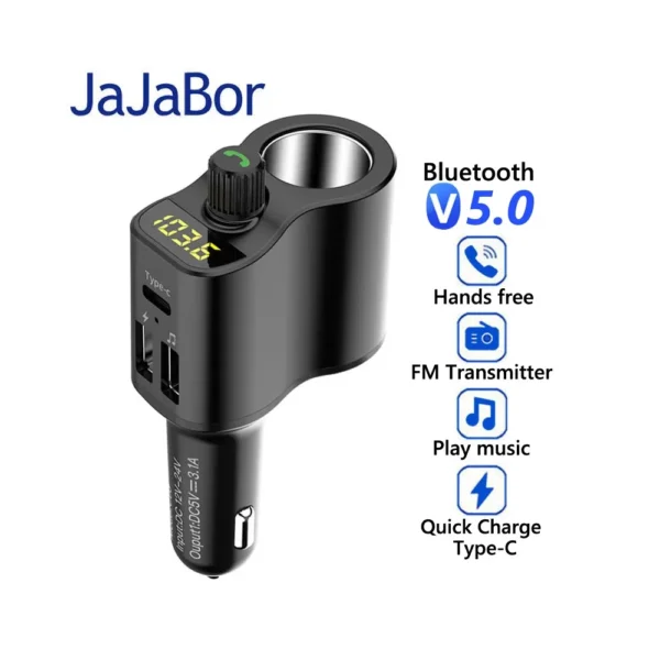 JaJaBor FM Transmitter Bluetooth 5.0 Car Kit Handsfree Car Music Player Cigarette Lighter Socket Splitter Dual USB Car Charger