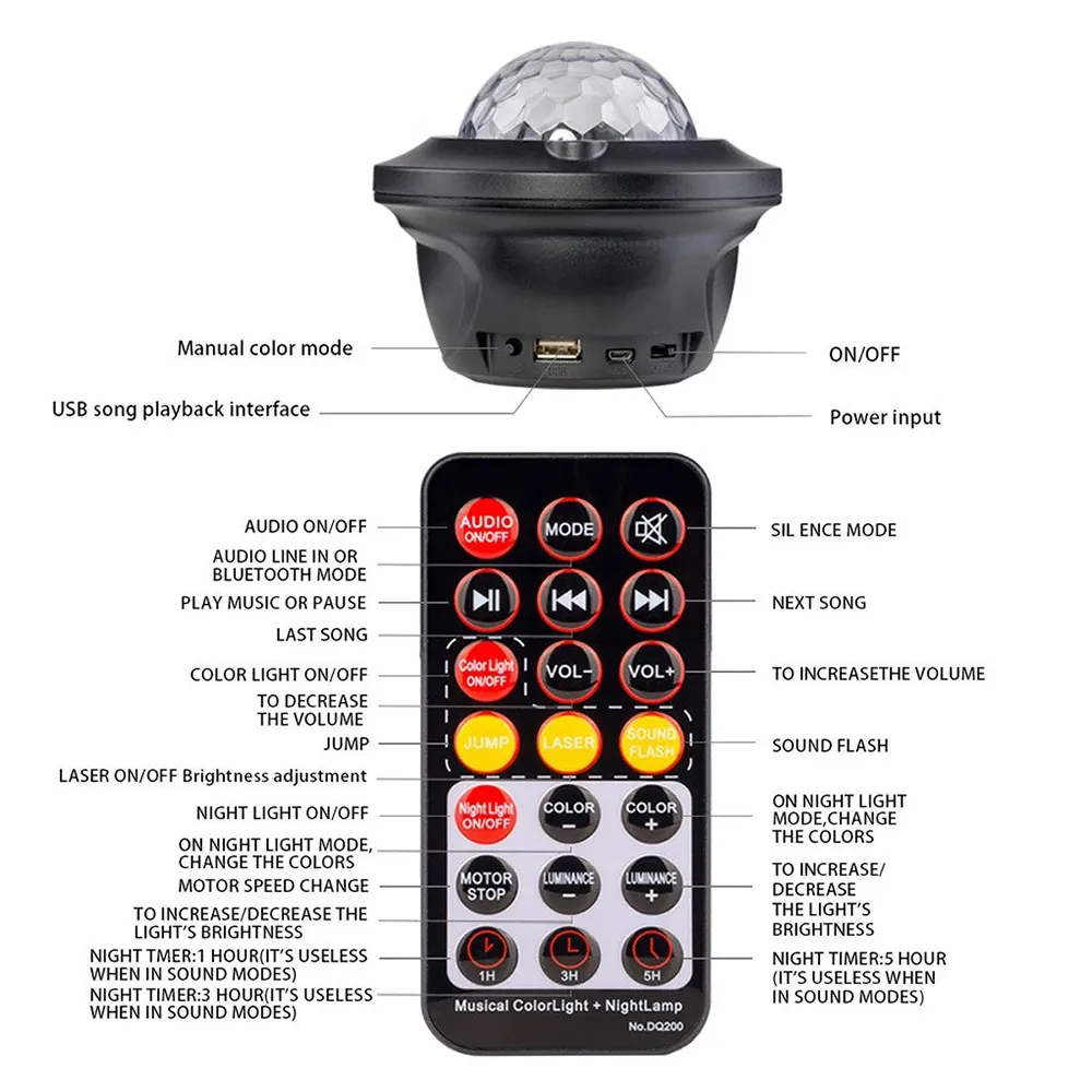 The projector light allows you to adjust the music mode by connecting a mobile phone.